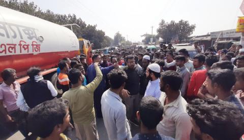 ঈশ্বরগঞ্জে চাঁদা বন্ধের দাবিতে মহাসড়ক অবরোধ