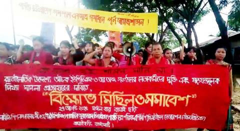 ইউপিডিএফের আটক নেতা-কর্মীদের মুক্তি দাবিতে সাজেকে বিক্ষোভ