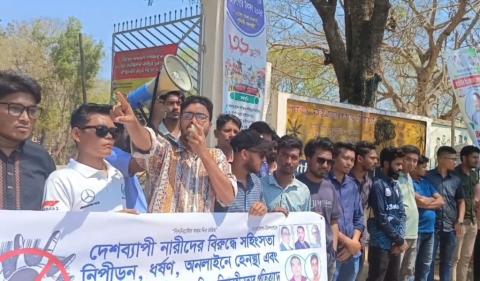 রাজু :: দেশব্যাপী নারী নির্যাতন, ধর্ষণ, সহিংসতা, অনলাইন হয়রানি এবং বিচারহীনতার প্রতিবাদে কেন্দ্রীয় কর্মসূচির অংশ হিসেবে বাংলাদেশ জাতীয়তাবাদী ছাত্রদল, রাঙামাটি সরকারি কলেজ শাখার উদ্যোগে এক মানববন্ধন অনুষ্ঠিত হয়েছে।